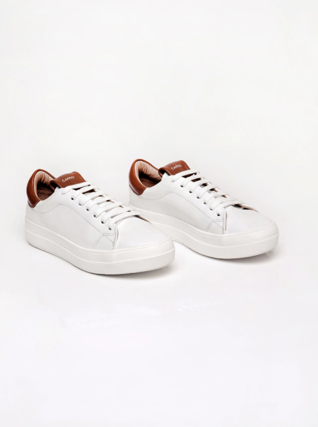 Kendal Glow en cuero premium blanco con detalles en cuero suela y cordones blancos.